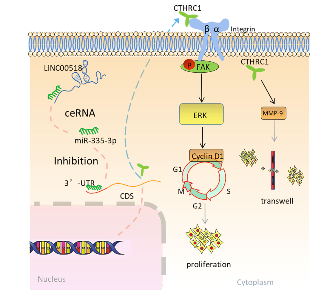LINC00518/miR-335-3p/CTHRC1轴促进肺腺癌增殖、迁移、侵袭的机制研究模式图