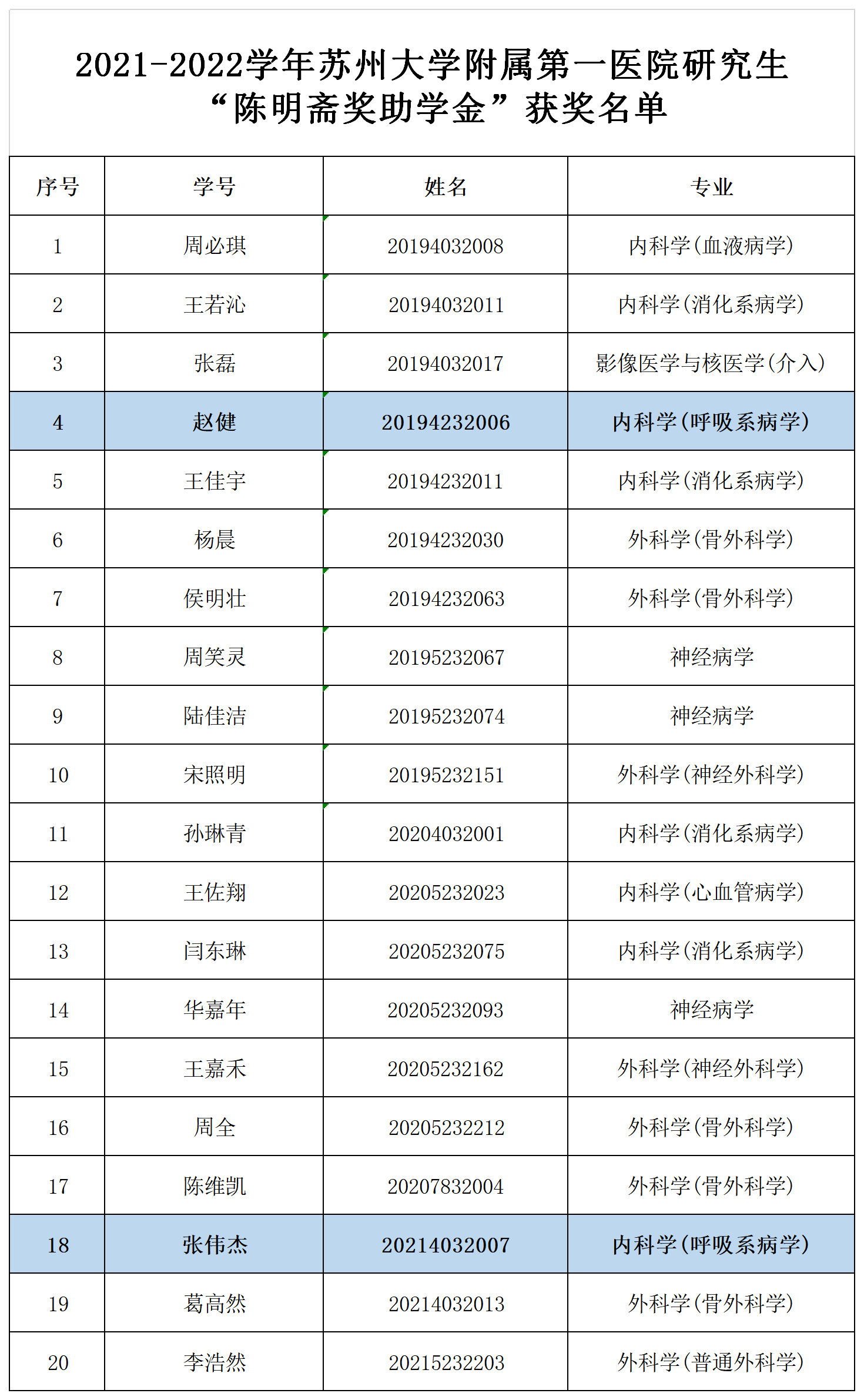 本次评定经陈明斋奖助学金评定工作小组初选、评审委员会专家会议评审等环节,严格按照陈明斋奖助学金条例完成申报推荐和评定工作,共评出20名研究生和15名本科生。值得注意的是,大内科各专业硕博研究生中,我所2名学生同时获此殊荣,体现了本研究所的教育成果和科研培养水平。希望获奖同学学习陈明斋教授的高尚医德和积极进取精神,为人民的生命健康事业敬业奉献。